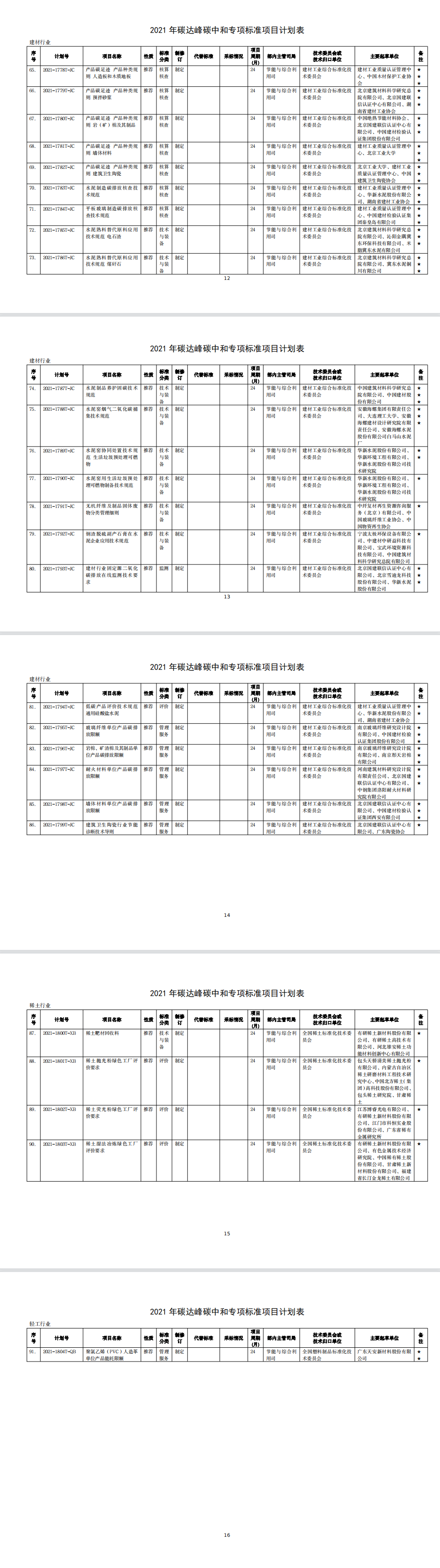 為發(fā)揮標(biāo)準(zhǔn)在推進(jìn)工業(yè)領(lǐng)域碳達(dá)峰碳中和工作的引領(lǐng)和規(guī)范作用,我部編制完成了2021年碳達(dá)峰碳中和專項(xiàng)行業(yè)標(biāo)準(zhǔn)制修訂項(xiàng)目計(jì)劃?,F(xiàn)印發(fā)給你們,請(qǐng)認(rèn)真組織落實(shí)。有關(guān)事項(xiàng)通知如下: