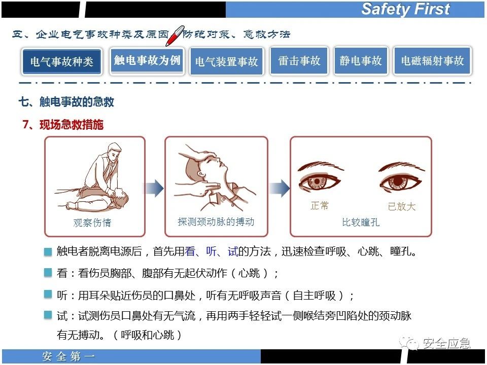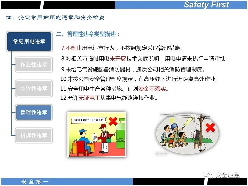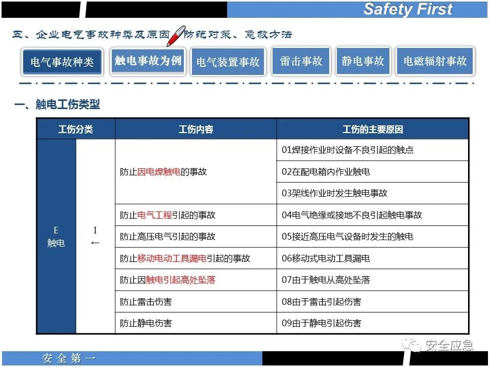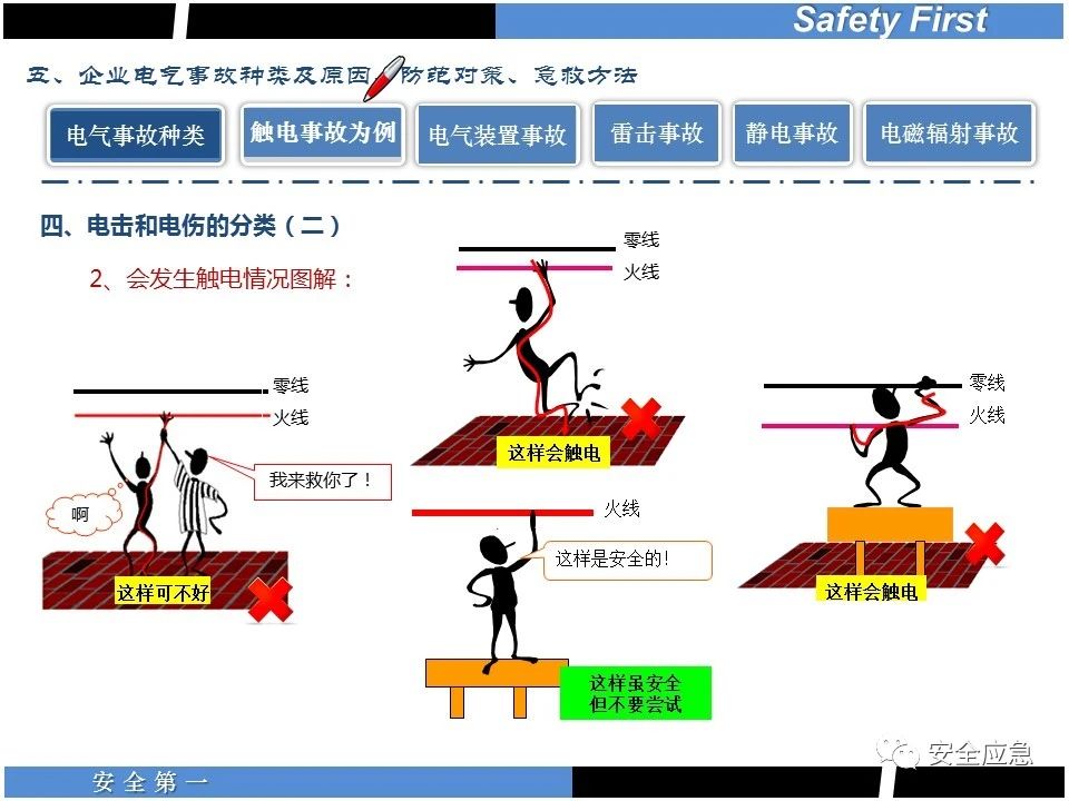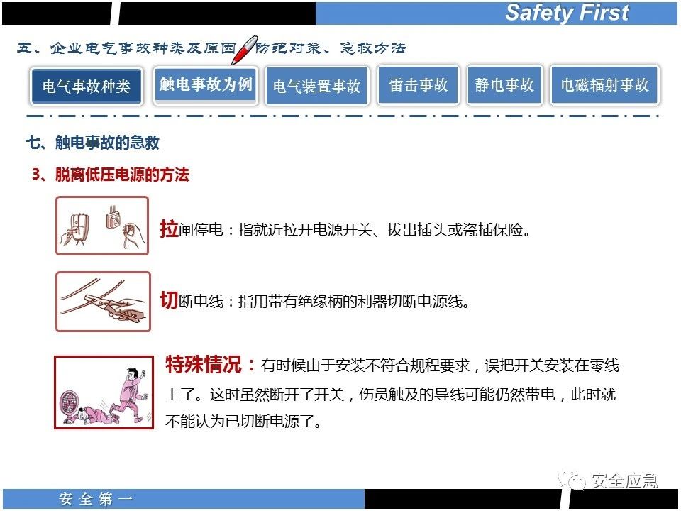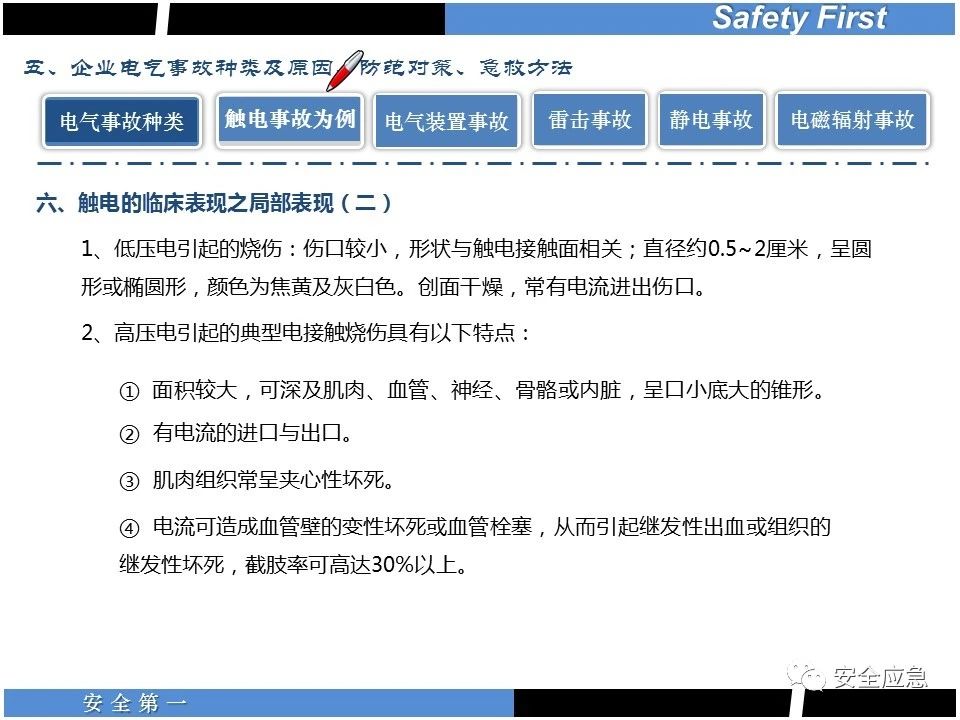 案例73 事故案例73:某35變電站準(zhǔn)備10kV避雷器試驗(yàn)。作業(yè)人員會(huì)同運(yùn)行人員準(zhǔn)備查看設(shè)備實(shí)際情況,拆卸10kV開關(guān)柜背板螺栓,打開了柜門上的電磁鎖,并打開了后柜門后,作業(yè)人員探頭進(jìn)入開關(guān)柜內(nèi)時(shí),對(duì)開關(guān)柜放電。 其它案例見17、18、19、20、21、22、23、50、52。 (27)多組人員組織混亂 案例74 事故案例74:某單位開展500kV線路停電檢修和地線融冰試驗(yàn)。1名工作人員不聽他人勸阻,登塔拆除引流線。隨后開展地線融冰試驗(yàn),該工作人員觸電死亡。 其它案例見45、46、47、48。 (28)交底不認(rèn)真 案例75 事故案例75:某工作負(fù)責(zé)人帶領(lǐng)兩名工作人員準(zhǔn)備在10kV線路裝設(shè)接地線。工作前,工作負(fù)責(zé)人沒有進(jìn)行班前(后)會(huì),沒有分配工作任務(wù),也沒有交代安全注意事項(xiàng),另外兩人也沒有主動(dòng)詢問,相互提醒,導(dǎo)致工作負(fù)責(zé)人無監(jiān)護(hù)誤登運(yùn)行線路,造成觸電。 其它案例見32。 (29)監(jiān)護(hù)不到位 l 單人工作無監(jiān)護(hù) 事故案例:36。 l 監(jiān)護(hù)人參與工作 事故案例:11。 l 監(jiān)護(hù)不認(rèn)真,或默許違章行為 事故案例:67。 (30)人員、工作安排不恰當(dāng) 案例76 事故案例76:某供電所安排不具備單獨(dú)工作資格和能力的新入廠員工上桿進(jìn)行配變?cè)O(shè)備搶修工作,由于安全距離不夠,員工經(jīng)驗(yàn)不足,監(jiān)護(hù)不到位,導(dǎo)致觸電。 案例77 事故案例77:某高壓試驗(yàn)班開展定檢預(yù)試作業(yè)。工作負(fù)責(zé)人與工作人員在抄錄放電計(jì)數(shù)器銘牌,另一名剛參加工作不久的工作人員拿著自制試驗(yàn)線插入移動(dòng)電源盤插座內(nèi),然后,用左、右手分別拿住兩個(gè)鱷魚夾準(zhǔn)備對(duì)放電器搭接做試驗(yàn),左、右手習(xí)慣性的分別握住了兩個(gè)鱷魚夾的導(dǎo)體部分,此時(shí)電流通過人體,漏電保護(hù)器沒有動(dòng)作,觸電死亡。 (31)單人作業(yè) l 野外單人巡線、勘察 案例78 事故案例78:某單位開展線路巡視時(shí),單人作業(yè),在被告知“巡視完N58塔后切勿過江,要沿原路返回”的情況下,仍然獨(dú)自一人違規(guī)游泳過江,溺水身亡。 案例79 事故案例79:某單位野外勘察時(shí),某工作人員在未告知工作負(fù)責(zé)人的情況下,獨(dú)自一人返回車輛所在地,途中墜落懸崖暈倒,受輕傷并失蹤12小時(shí)。 附件:最全面的電氣安全培訓(xùn),實(shí)用!