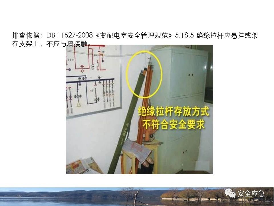 案例1 事故案例1:某輸電管理所對(duì)某35kV線路停電登檢,其中一段與10kV線路共桿塔架設(shè),35kV線路在上層,10kV線路在下層,工作前10kV、35kV線路均停電、驗(yàn)電懸掛接地線。工作過程中10kV線路送電,3名工作班成員1死2傷。 案例2 事故案例2:某供電所開展拆除10kV空線作業(yè)。該桿塔有2回10kV線路,一回在上方,運(yùn)行狀態(tài)。待拆除空線在下方。作業(yè)人員未進(jìn)行驗(yàn)電,登桿后掛接地線。在先掛好B相后,由于掛不到AC相,爬到電桿頂上,此時(shí)碰觸到運(yùn)行線路觸電死亡。 案例3 事故案例3:某供電所開展10kV線路拆除作業(yè)。桿塔西側(cè)待拆除線路在檢修狀態(tài),東側(cè)2回10kV線路分上下兩層在運(yùn)行狀態(tài)。工作任務(wù)結(jié)束后,工作負(fù)責(zé)人看見塔上電纜搭在第二臺(tái)鋼塔橫擔(dān)上,隨即上塔處理,準(zhǔn)備從塔的西面移至東面準(zhǔn)備抬電纜時(shí),后頸部碰觸到帶電線路觸電死亡。 (2)安全距離不夠的線路未停電 案例4 事故案例4:事故前,施工單位在正常運(yùn)行的10kV青龍線上方搭建竹跨越架。10kV青龍線99-100號(hào)桿段上方有帶電運(yùn)行的35kV田金線跨越,最短距離5.37米。由于10kV青龍線跨越架倒塌,導(dǎo)致斷桿、多檔導(dǎo)線脫落。隨后,工作人員開展缺處工作。在10kV青龍線導(dǎo)線收緊時(shí),導(dǎo)線被抬升后與上方運(yùn)行的35kV田金線安全距離不足放電,導(dǎo)致收線的8名施工人員觸電,4人死亡4人受傷。 案例5 事故案例5:某單位進(jìn)行400V干線收緊弧垂工作,工作地點(diǎn)上方交叉跨越的10kV線路距離400V主干配電線#1桿桿頂830mm,但未停電。工作人員準(zhǔn)備實(shí)施緊線作業(yè),當(dāng)左腿跨至橫擔(dān)上時(shí),上方交叉跨越的10kV線路對(duì)其右肩背放電。 案例6 事故案例6:某施工隊(duì)開展新建10kV線路穿越運(yùn)行的110kV線路作業(yè),兩回線距離僅有1.3m 左右,造成110kV線路對(duì)新架設(shè)10kV線路放電,死亡1人,重傷1人。 案例7 事故案例7:某施工隊(duì)進(jìn)行10kV新建立桿施工過程中,扒桿倒在鄰近運(yùn)行的10kV運(yùn)行線路上,導(dǎo)致人身觸電,2人死亡,1人受傷。 案例8 事故案例8:某施工隊(duì)負(fù)責(zé)人開展低壓線路架設(shè)工作。手拉導(dǎo)線由B2#桿展放上到配變后,兩名工作人員手持導(dǎo)線同時(shí)上到帶電的變壓器雙桿上,一名工作人員在上層工作時(shí)與10kV裸導(dǎo)線較近,將手持的400V絕緣導(dǎo)線誤碰到10kV變框小母線后,導(dǎo)至兩人同時(shí)觸電。 案例9 事故案例9:某施工隊(duì)開展10kV高壓跌落熔斷器安裝工作。本應(yīng)在原10kV阿租支線0號(hào)桿、1號(hào)桿,10kV一街Ⅱ回線26號(hào)桿、28號(hào)桿各裝一組接地線。但實(shí)際10kV一街Ⅱ回線27號(hào)桿大號(hào)側(cè)、原10kV阿租支線1號(hào)桿大號(hào)側(cè)各裝設(shè)了1組接地線。同時(shí),接地線的接地樁埋深為41 cm,因土壤長期干旱,造成接地電阻較大(實(shí)測值:333歐),遠(yuǎn)遠(yuǎn)超過接地要求值(30歐),接地線失去接地保護(hù)作用。由于10kV一街線坡頭支線(原帶電)與10kV一街Ⅱ回線(原不帶電)桿之間有交叉跨越(垂直距離約2米),檔距較大,刮大風(fēng)導(dǎo)致10kV一街線坡頭支線向上舞動(dòng),對(duì)10kV一街Ⅱ回線放電,致使2名作業(yè)人員觸電,1死1傷。 其它案例見37、38。 (3)錯(cuò)停線路 案例10 事故案例10:某工作人員與調(diào)度聯(lián)系停電線路時(shí),錯(cuò)誤說成其他線路,導(dǎo)致其他線路停電而工作線路未停電。隨后,工作人員在沒有采取驗(yàn)電、掛接地線等安全措施的情況下便登桿,造成觸電。 (4)開關(guān)柜相鄰柜之間沒有隔板,但未停相鄰間隔 案例11 事故案例11:某檢修班組開展10kV開關(guān)柜(GG1A柜)檢修作業(yè)。工作人員獨(dú)自爬上4321隔離開關(guān)柜頂從事4321隔離開關(guān)檢修相關(guān)工作。因其與相鄰間隔的帶電的10kVII段母線安全距離不夠,觸電死亡。 案例12 事故案例12:某工作人員在開關(guān)柜內(nèi)進(jìn)行二次接線,由于工作地點(diǎn)與相鄰柜之間沒有隔板,意外墜入相鄰帶電開關(guān)柜,導(dǎo)致觸電。 (5)不停電不正確使用安全工器具開展低壓作業(yè) 案例13 事故案例13:某廠家對(duì)220kV變壓器的繞組溫度計(jì)進(jìn)行更換消缺工作。在沒有對(duì)繞組溫度計(jì)工作電源(220V)停電的情況下作業(yè)。將帶有220V電壓的電纜芯線上的絕緣帶拆除時(shí),誤碰帶電芯線造成觸電死亡。 案例14 事故案例14:某供電所員工檢查一客戶家中斷電情況。巡線時(shí)發(fā)現(xiàn)220V低壓線路導(dǎo)線斷線,在未斷開低壓開關(guān)、未戴絕緣手套的情況下,試圖將導(dǎo)線卷起時(shí),不慎觸碰帶電導(dǎo)線中間裸露部分,導(dǎo)致觸電死亡。 案例15 事故案例15:某工作人員在檢查時(shí)發(fā)現(xiàn)220V低壓線路故障點(diǎn),在未戴手套、未使用絕緣梯子的情況下,在拆除三通PVC管時(shí),左手不慎觸碰帶電絕緣導(dǎo)線破損點(diǎn)裸露部分,導(dǎo)致觸電受傷。 2.驗(yàn)電環(huán)節(jié) (6)不檢查設(shè)備狀態(tài)、不驗(yàn)電 案例16 事故案例16:供電所某員工在未攜帶驗(yàn)電器、接地線、絕緣手套、絕緣靴、安全帽等必備安全工器具的情況下處理10kV用戶缺相故障。一名工作人員拉開AB相跌落保險(xiǎn)后,由于尿急想去小便,就把絕緣操作桿遞給正在