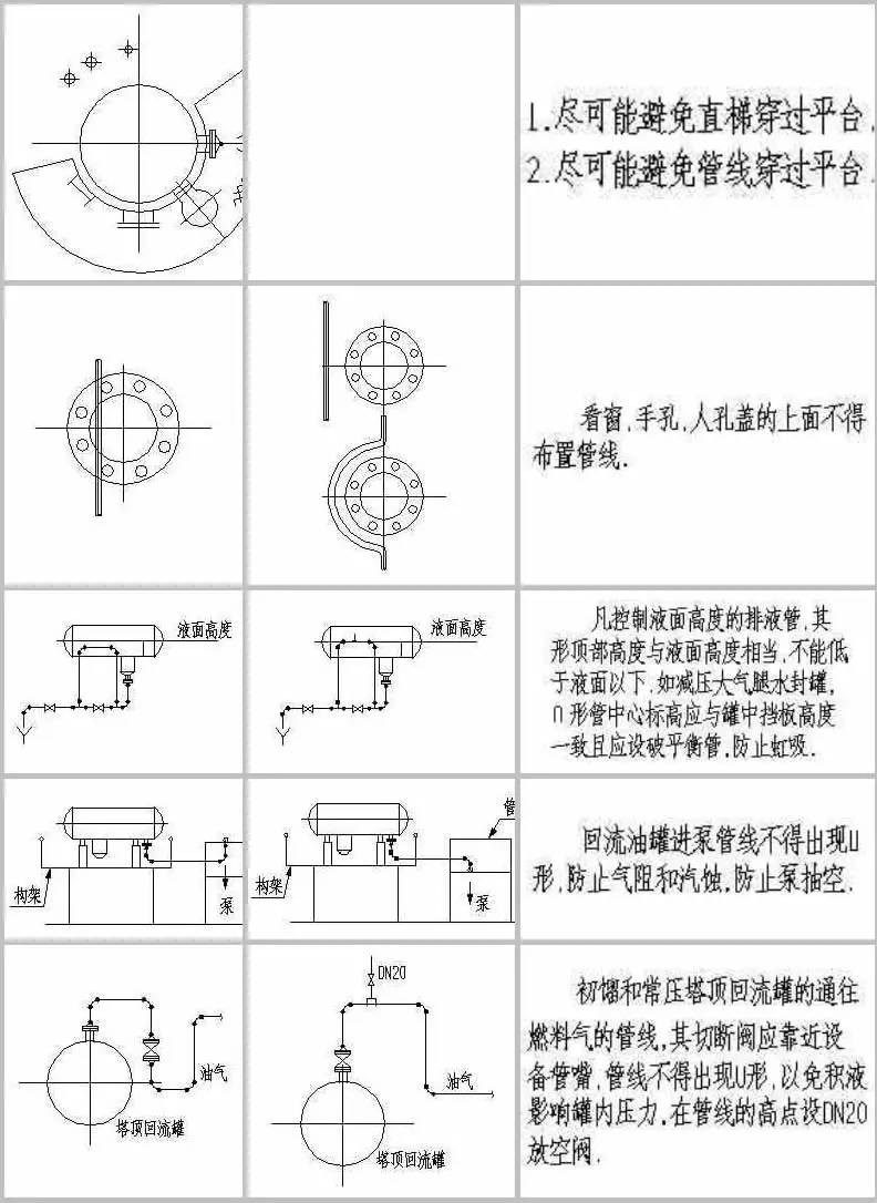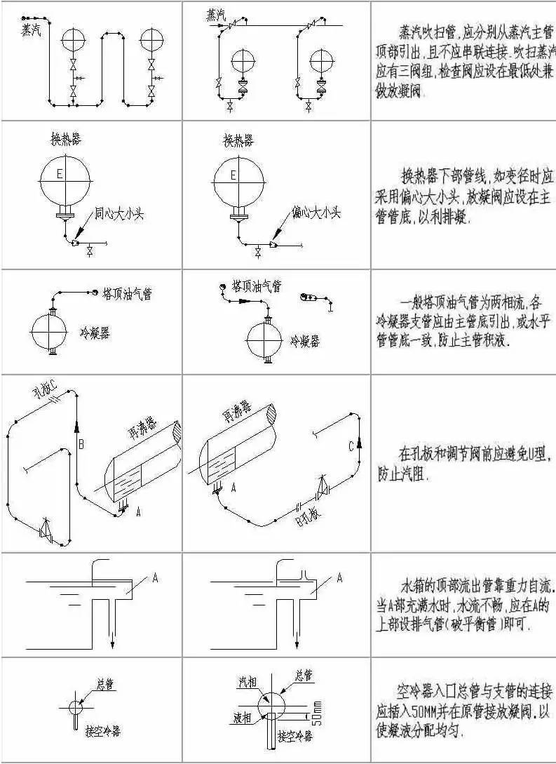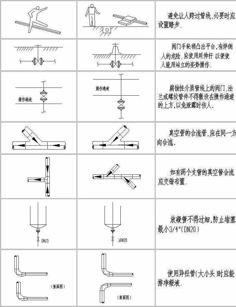 計中經(jīng)常由于設計人員的疏忽及經(jīng)驗不足,會造成管道布置不合理,操作檢修不便,外表不美觀的情況。為提高設計質(zhì)量,減少常識性錯誤的發(fā)生,本文為大家整理了配管設計中這些最常見的實例!