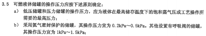 6.2.2條文解釋:對于有特殊要求的甲、乙液體物料,如苯乙烯、加氫原料、丙烯腈等易聚合、易氧化或有毒的液體物料,選用固定頂儲罐或臥式儲罐加氮封儲存也是可行的;