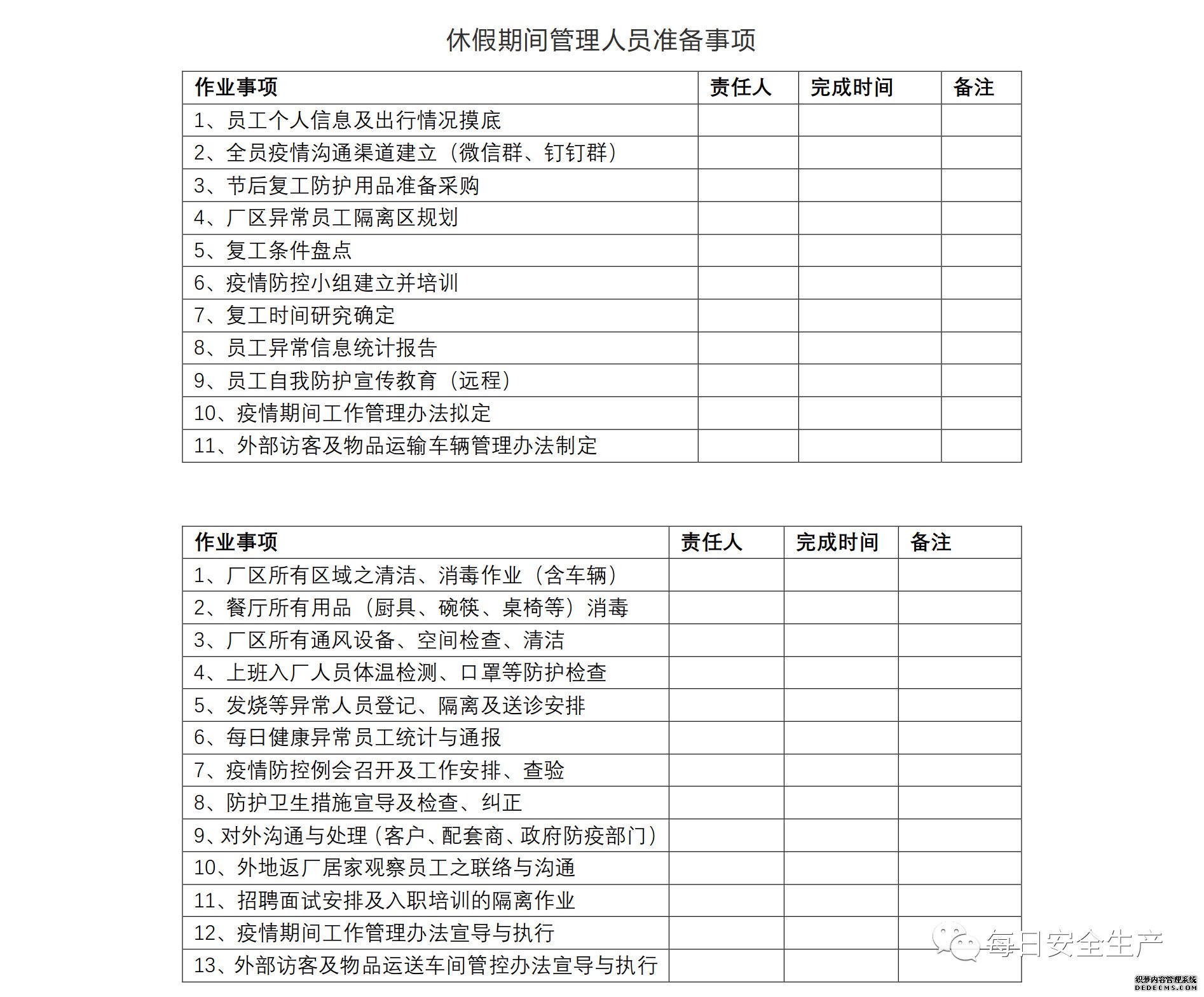 ② 必須制定企業(yè)疫情防控工作方案和復(fù)工生產(chǎn)實施方案;
