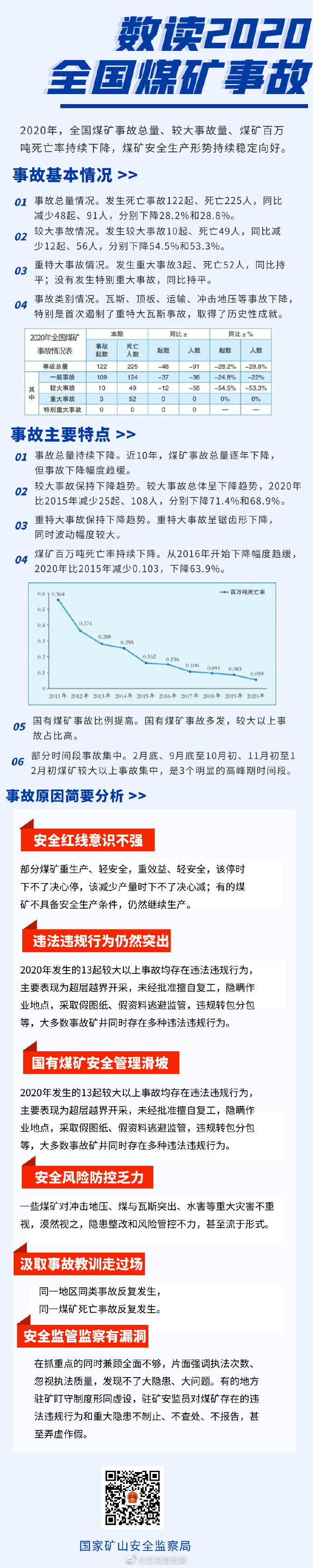 2020年,面對極其嚴(yán)峻復(fù)雜的國內(nèi)外形勢,特別是新冠肺炎疫情的嚴(yán)重沖擊,在黨中央、國務(wù)院的堅(jiān)強(qiáng)領(lǐng)導(dǎo)下,各地區(qū)、各有關(guān)部門和廣大煤礦企業(yè)統(tǒng)籌抓好疫情防控和安全生產(chǎn)工作,全國煤礦事故總量、較大事故量、煤礦百萬噸死亡率持續(xù)下降,煤礦安全生產(chǎn)形勢持續(xù)穩(wěn)定向好。