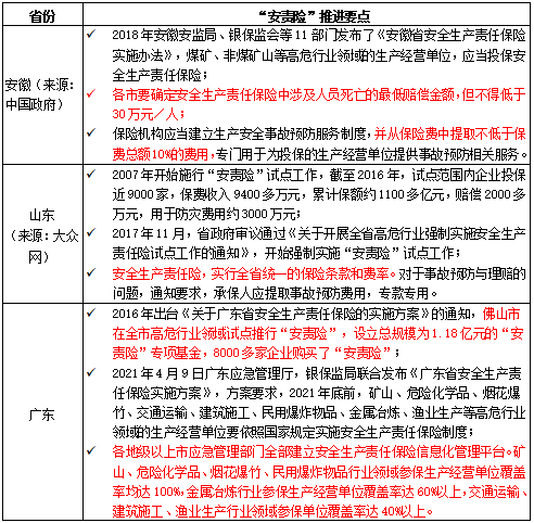 2016年12月,《中共中央國務(wù)院關(guān)于推進(jìn)安全生產(chǎn)領(lǐng)域改革發(fā)展的意見》明確要求:建立健全安全生產(chǎn)責(zé)任保險制度,在礦山、危險化學(xué)品、煙花爆竹交通運輸、建筑施工、民用爆炸物品、金屬冶、漁業(yè)生產(chǎn)等高危行業(yè)領(lǐng)域強(qiáng)制實施,切實發(fā)揮保險機(jī)構(gòu)參與風(fēng)險評估管控和事故預(yù)防功能。