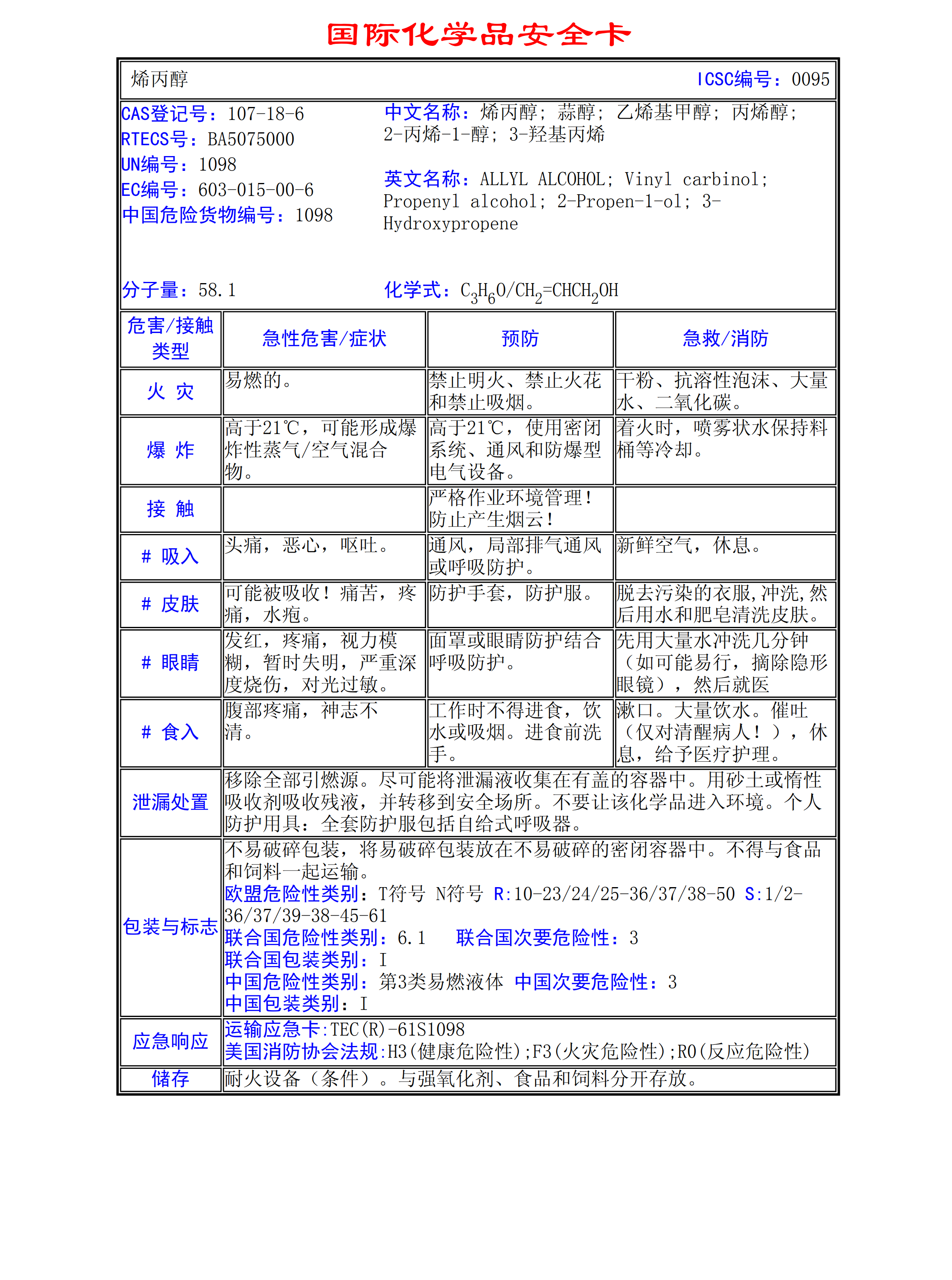 烯丙醇MSDS
