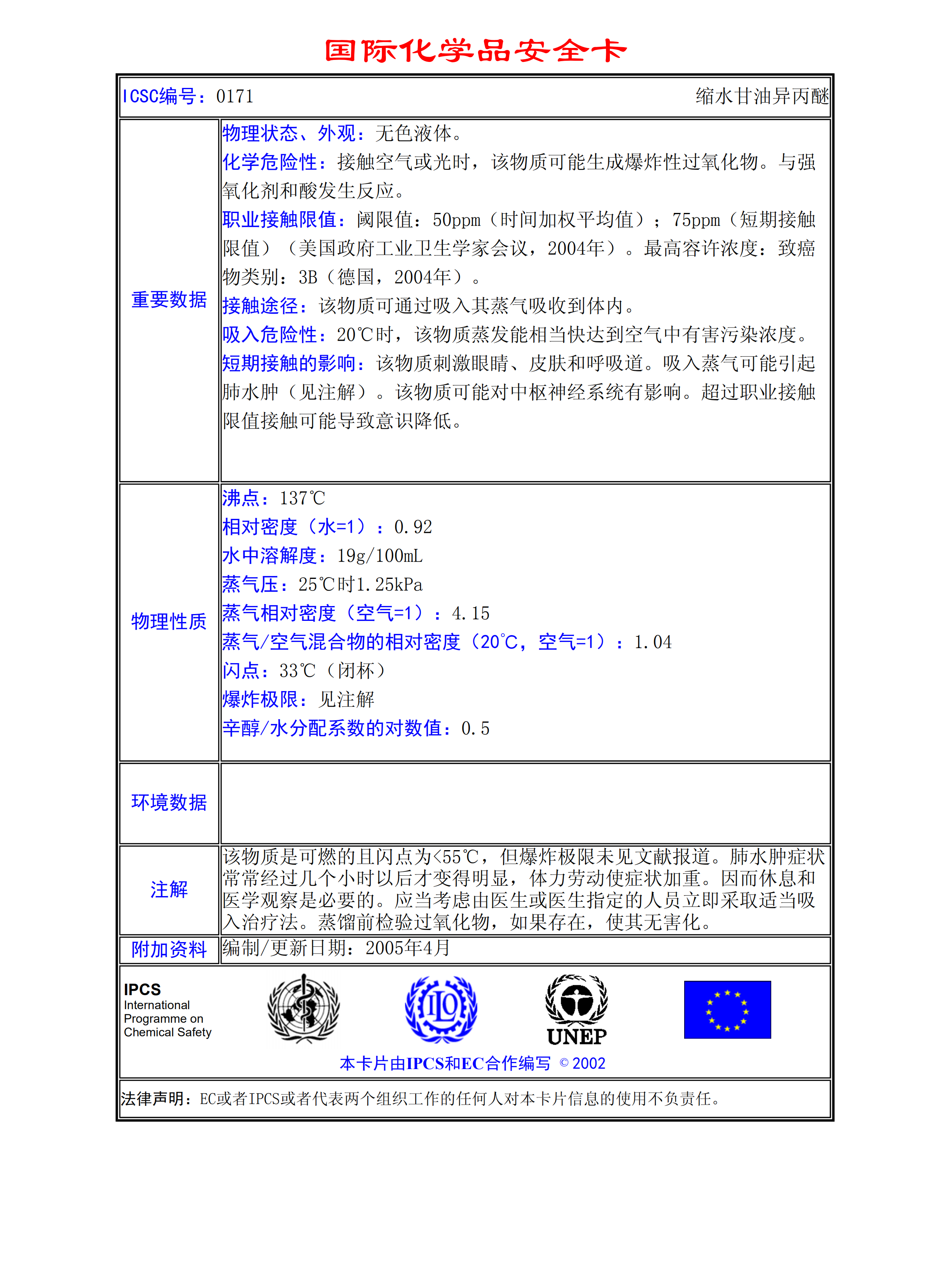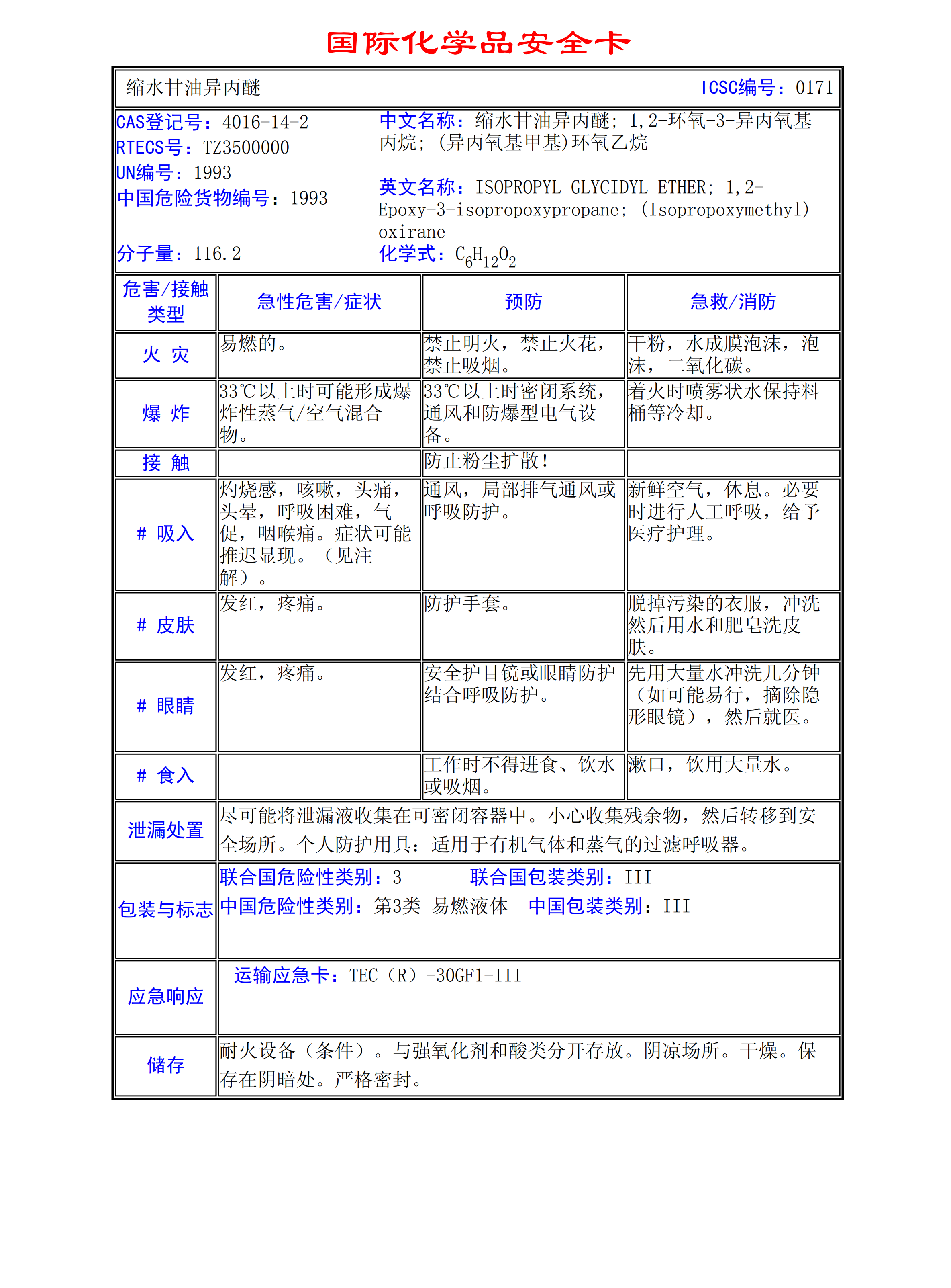 縮水甘油異丙醚MSDS