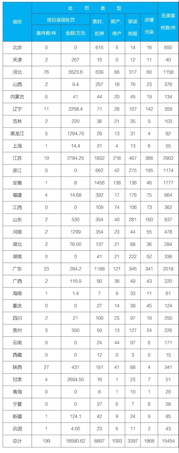 生態(tài)環(huán)境部通報(bào)2021年1-12月環(huán)境行政處罰案件與《環(huán)境保護(hù)法》配套辦法執(zhí)行情況