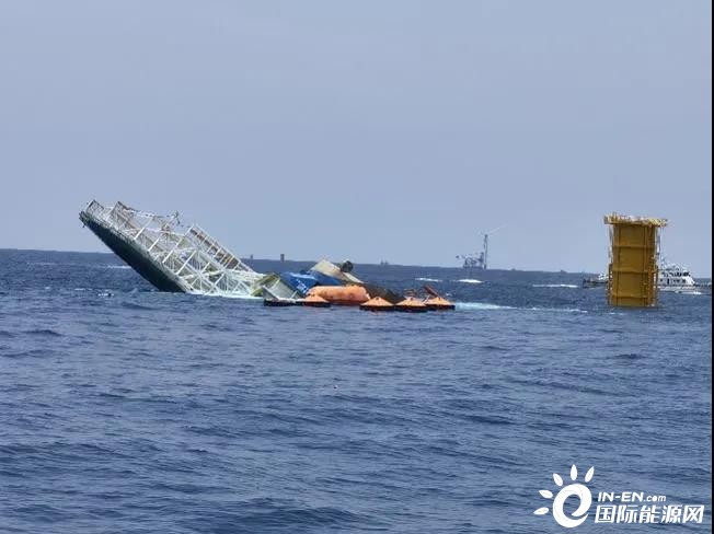 7月26日,中廣核惠州風電項目“升平001”號作業(yè)船施工平臺發(fā)生傾斜事故后,搜救行動進入第二天,仍有4人失聯(lián)!據了解,"升平001"施工平臺露出水面部分在緩慢減小,有趨向沉沒的跡象,平臺上面的鐵架已倒入水下。