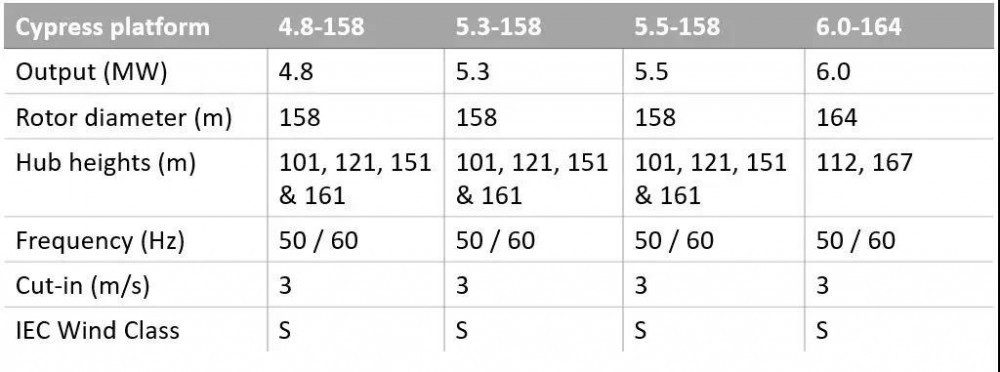 據(jù)了解,GE Cypress 5.3MW-158機型于2018年底上市,采用創(chuàng)新型兩段式碳纖維葉片。據(jù)GE稱,“Cypress”平臺的設(shè)計旨在全生命周期內(nèi),使GE能夠提供更廣泛的額定功率覆蓋范圍和輪轂高度,以滿足5MW范圍內(nèi)的客戶需求。與GE的3 MW機組相比,該平臺在平臺壽命期內(nèi)的年發(fā)電量(AEP)可以增加50%。