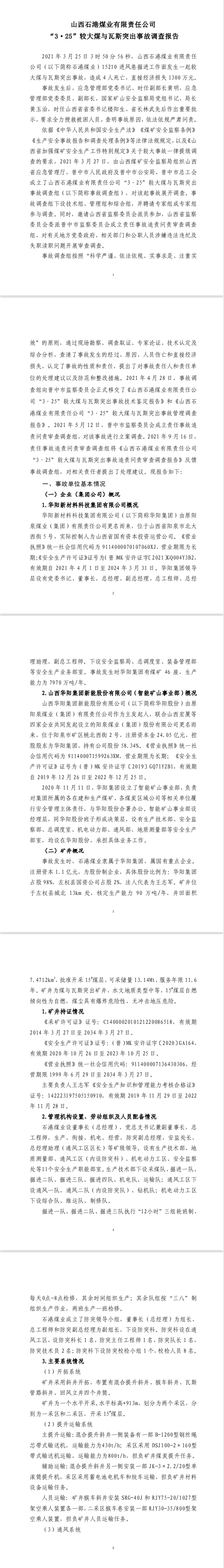 山西石港煤業(yè)“3·25”事故調(diào)查報(bào)告