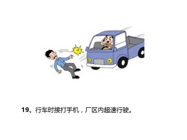 一、操作失誤、忽視安全、忽視警告 二、造成安全裝置失效 三、不安全的使用設(shè)備 四、用手替代工具操作 五、物體存放不當(dāng) 六、冒險進(jìn)入危險場所 七、處于不安全的位置 八、在起吊物下停留、作業(yè) 九、機(jī)械運(yùn)轉(zhuǎn)時加油、修理、檢查、調(diào)整、焊掃等 十、分散注意力的行為 十一、忽視實用個人防護(hù)用具 十二、不安全裝束 十三、對易燃易爆等危險品處理錯誤
