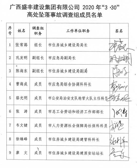 廣西盛豐建設(shè)集團(tuán)有限公司中央商務(wù)區(qū)·翡翠園15號樓工程2020年“3·30”高處墜落事故調(diào)查